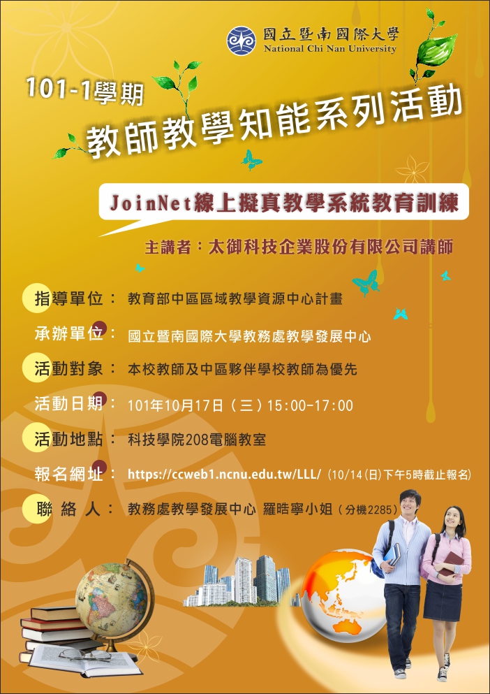 101-1學期教師教學知能系列活動-「JoinNet線上擬真教學系統教育訓練」