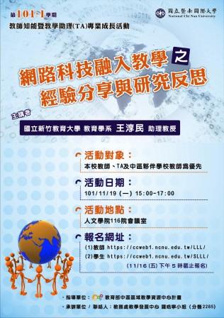 101-1學期教師教學知能系列活動-「網路科技融入教學之經驗分享與研究反思」