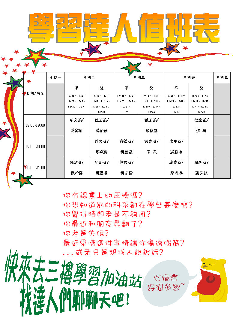 男宿學習達人排班表