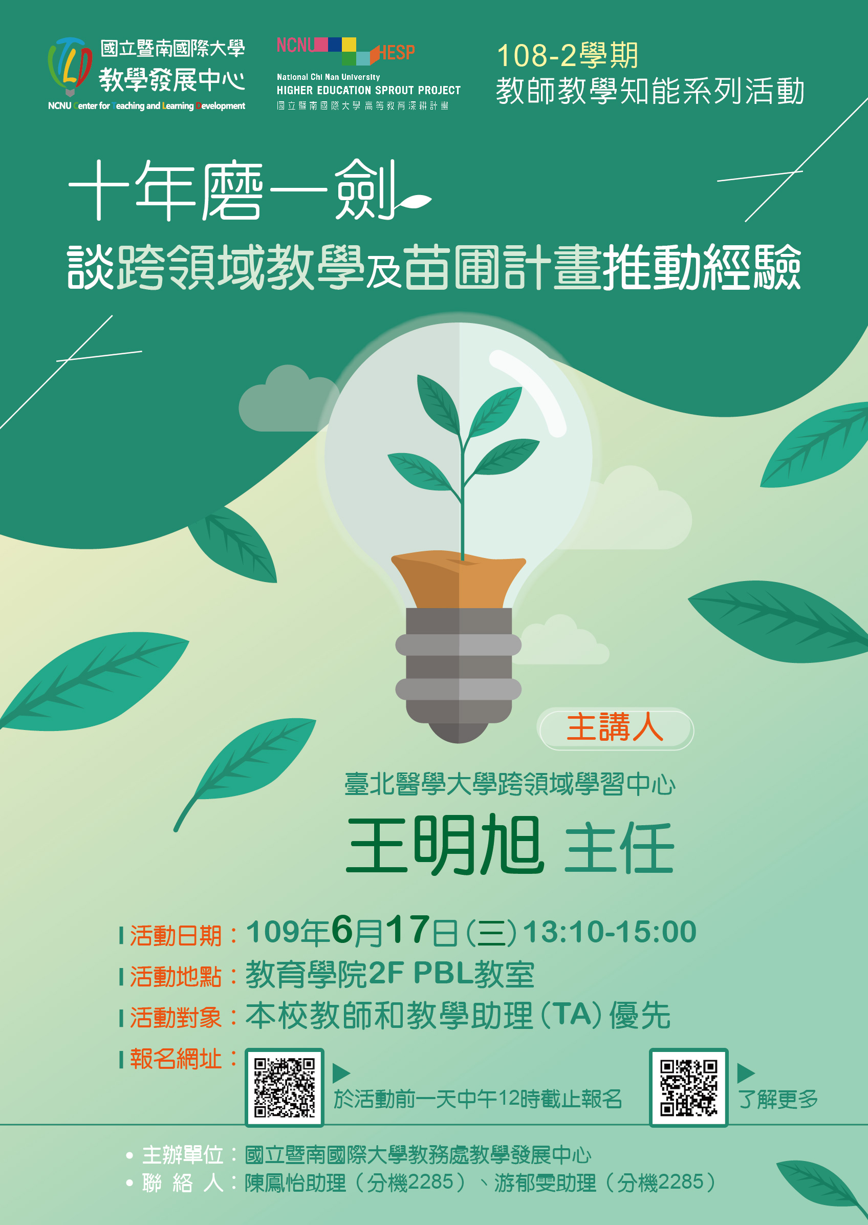 【教師知能活動】十年磨一劍,談跨領域教學及苗圃計畫推動經驗