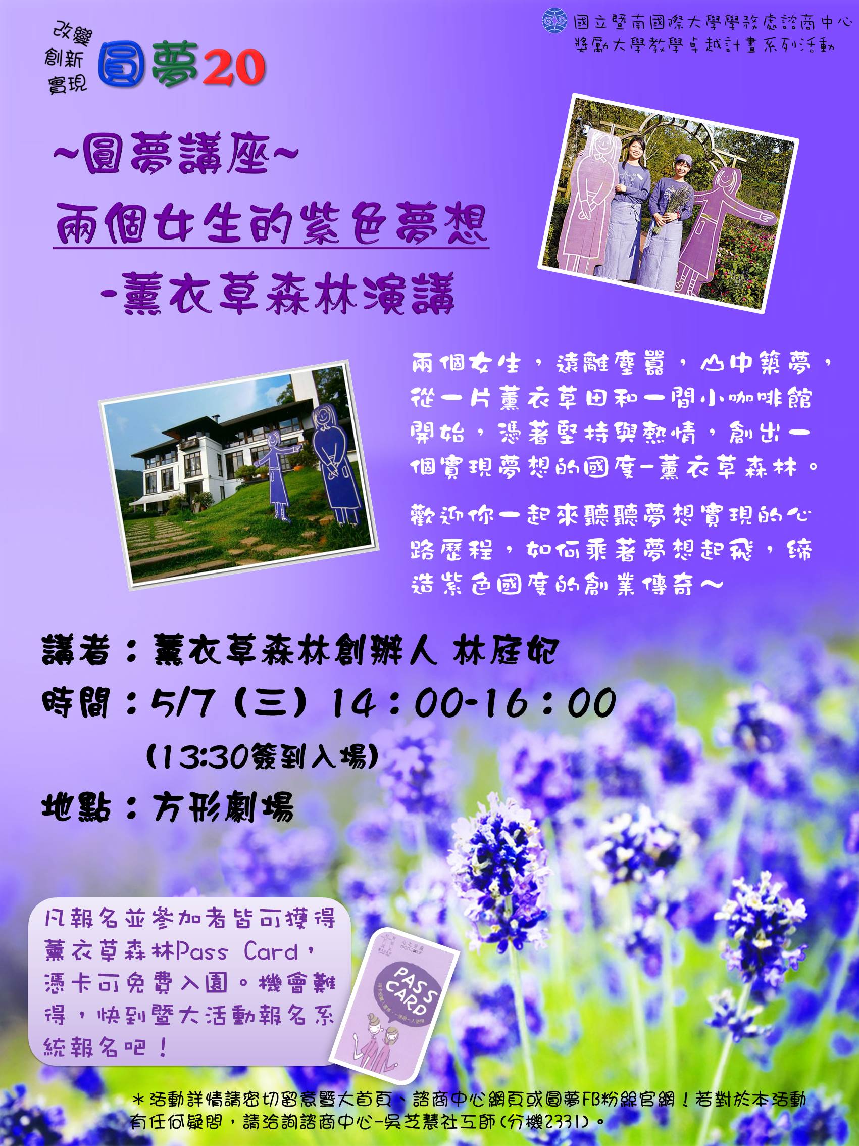 ~圓夢講座~ 兩個女生的紫色夢想-薰衣草森林演講