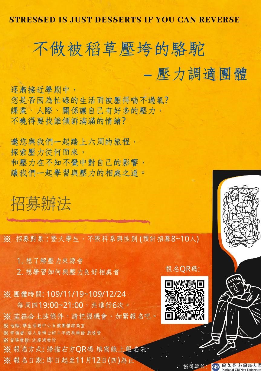 不做被稻草壓垮的駱駝-壓力調適團體